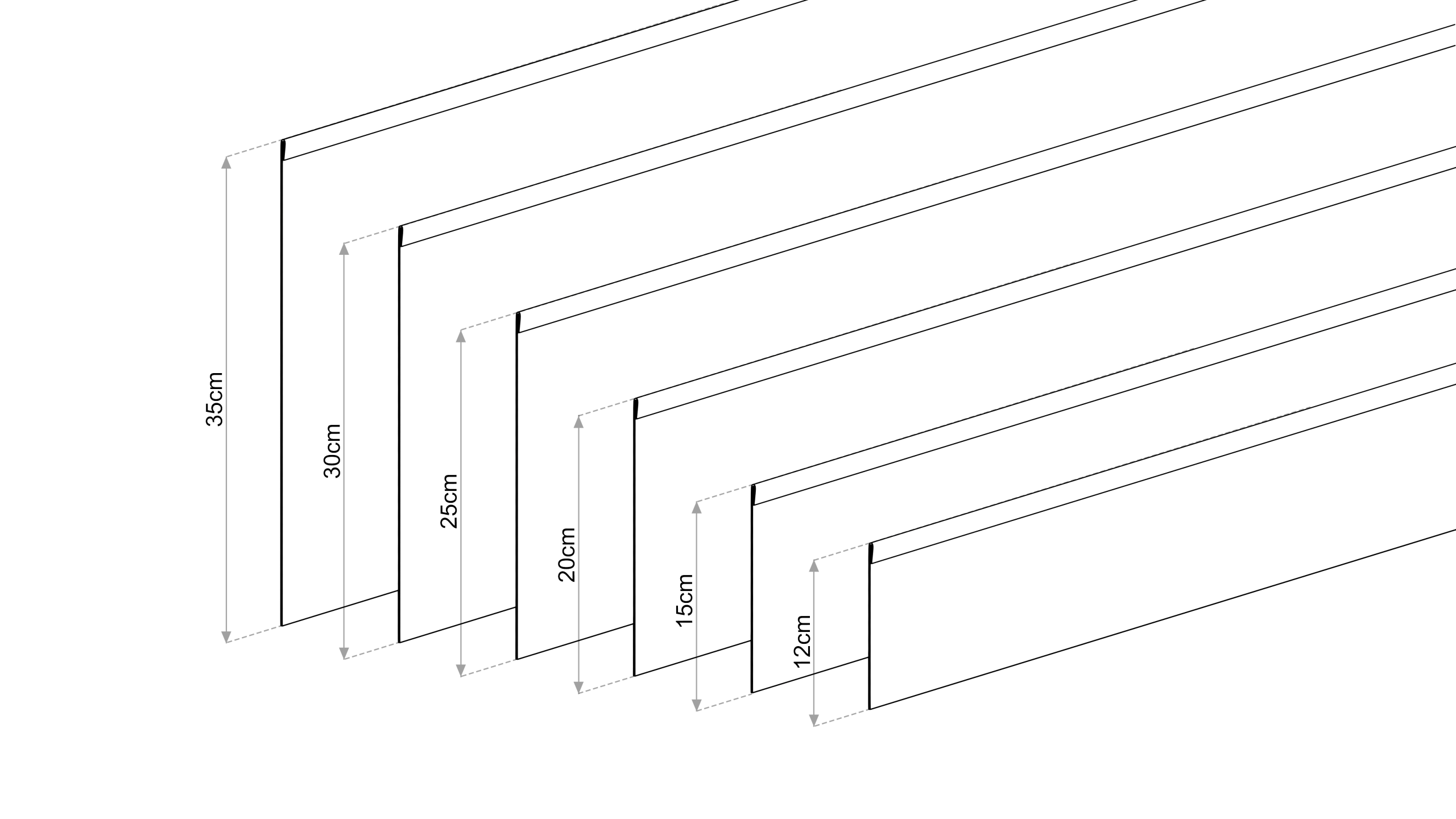 - Maße: Länge 150 cm, Höhe 12 / 20 / 30 cm, Stärke 1,5 mm